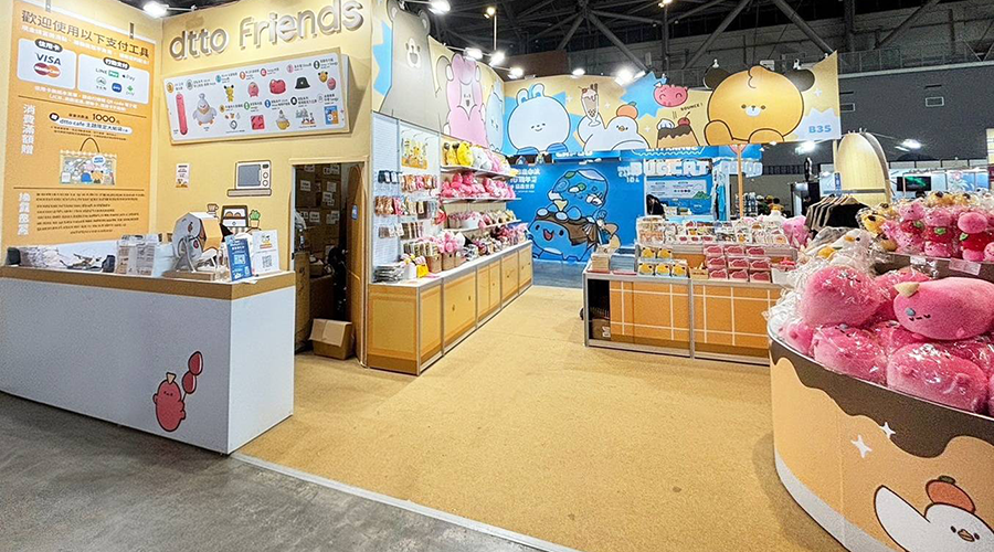 此案為 Dcard 人氣 IP「dtto friends」於 2024 年臺南文博會的展位設計與製作。以明亮溫暖的高飽和色彩結合大型立體造型與擬真情境佈置,打造充滿青春活力與共鳴感的社群打卡與沉浸式體驗空間。