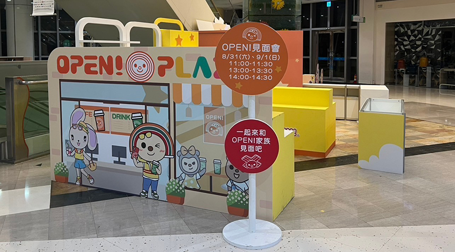 統一超商夢時代「OPEN 醬快閃店」以運動會為主題,結合建築元素與 OPEN! 家族色彩,打造迷你運動場,提供趣味互動與打卡體驗。