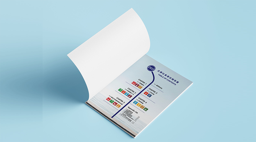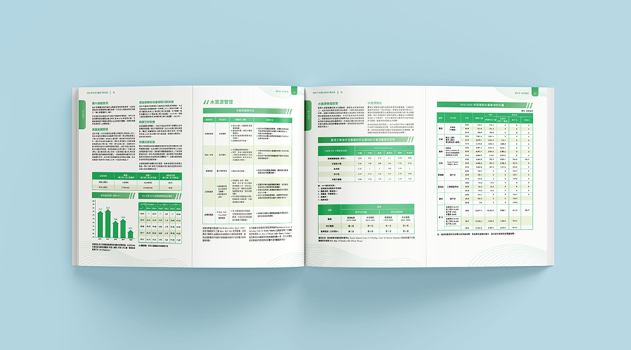 以天空藍為基調,搭配各章節不同色系區分永續議題,呈現清爽專業的閱讀節奏。