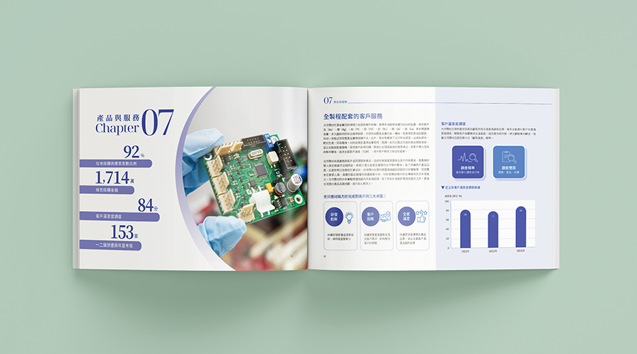 光洋應材2023年永續報告書設計,製作中/英文版本。