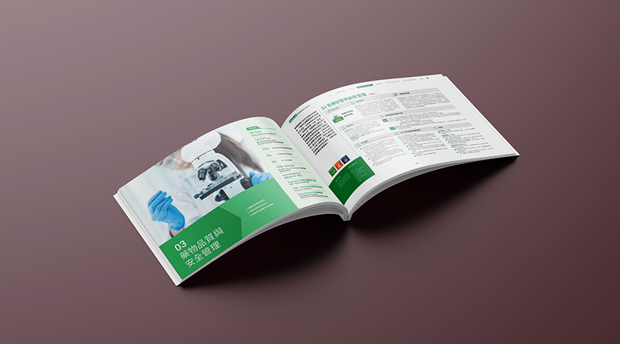 內頁設計延續現代化的網格結構,精準呈現研發數據、臨床試驗與永續指標。