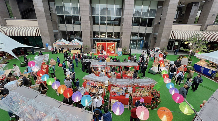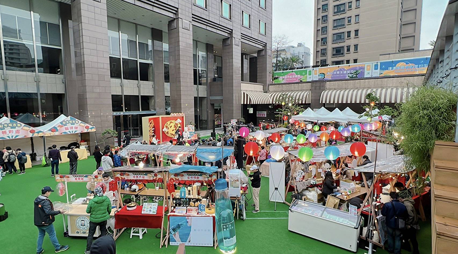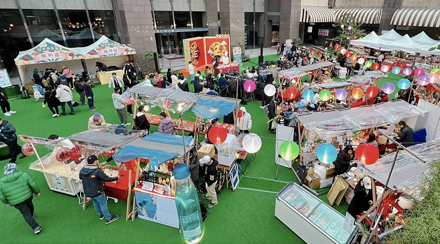 艾述設計為「捷運心中山 2024 年好年味市集」規劃攤位設計,將廣場空間化身為熱鬧喜氣的節慶市集。