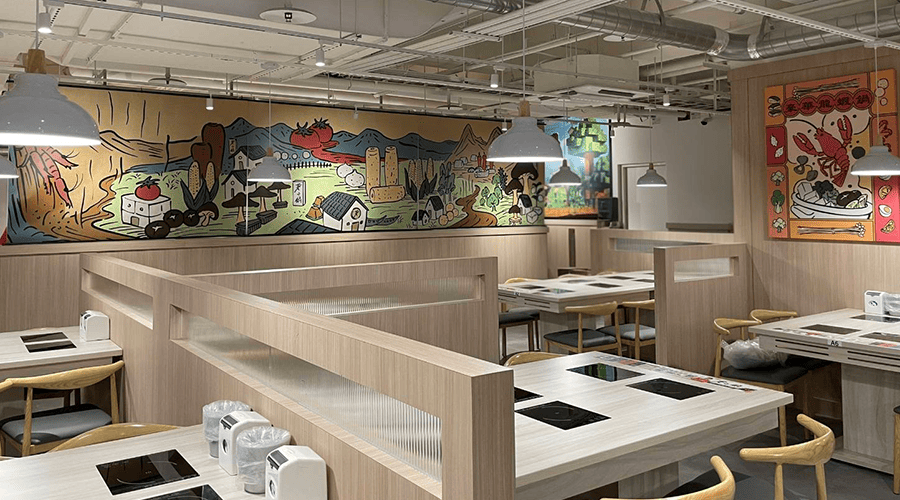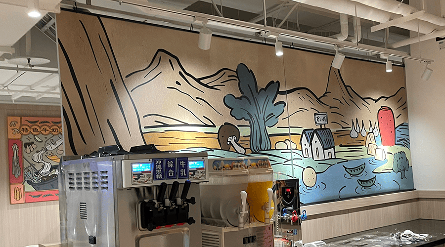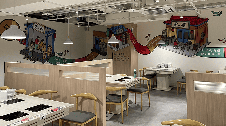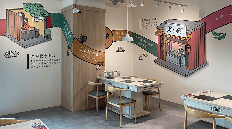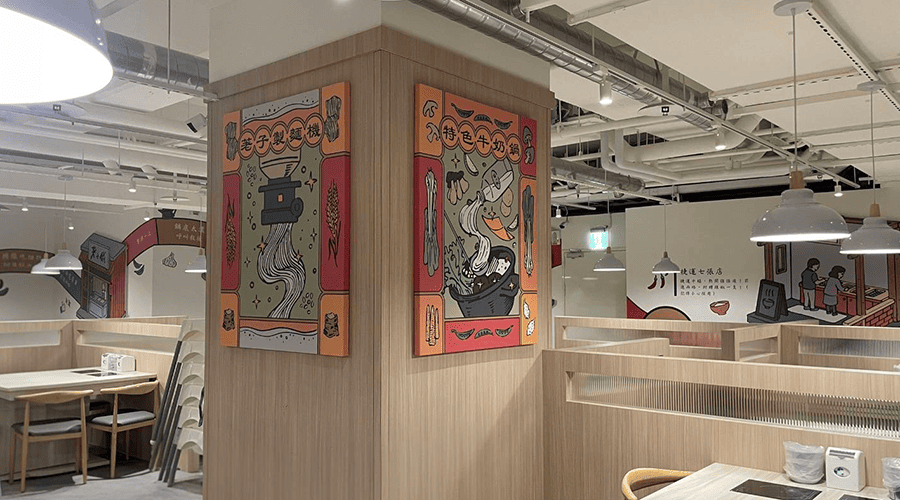 荖子鍋於板橋愛買南雅店登場,艾述設計負責店內壁貼與主題裝飾畫的設計與製作。